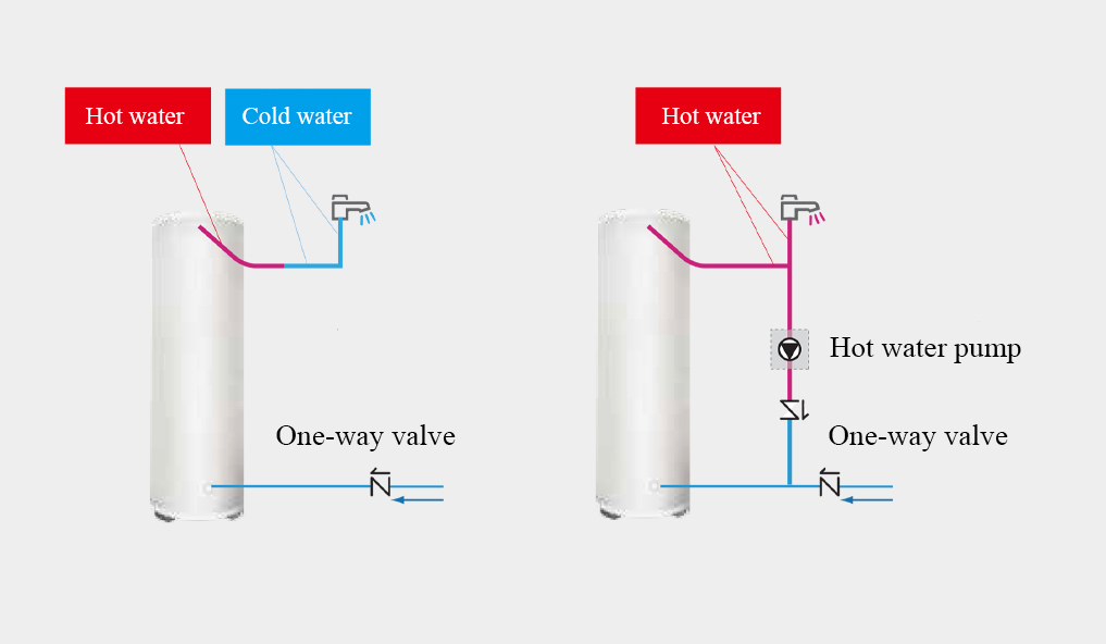 Функція насоса рециркуляції гарячої води використовується для повернення води з трубопроводу назад до бака гарячої води відповідно до встановленого таймера. Можна встановити до 12 таймерів на день, що дозволяє користувачам налаштувати роботу насоса рециркуляції гарячої води відповідно до звичок користування та забезпечує доступ до гарячої води без тривалого очікування.